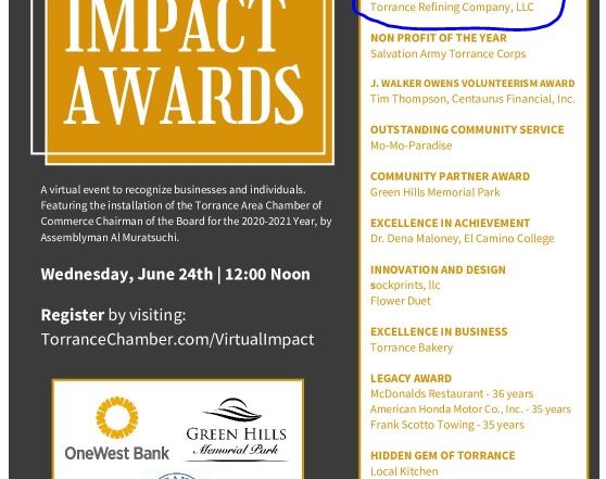 The Torrance Area Chamber of Commerce (TACC) recognized Torrance Refining Company (TORC) with the “2020 Large Business of the Year Impact Award.” Presented virtually on […]